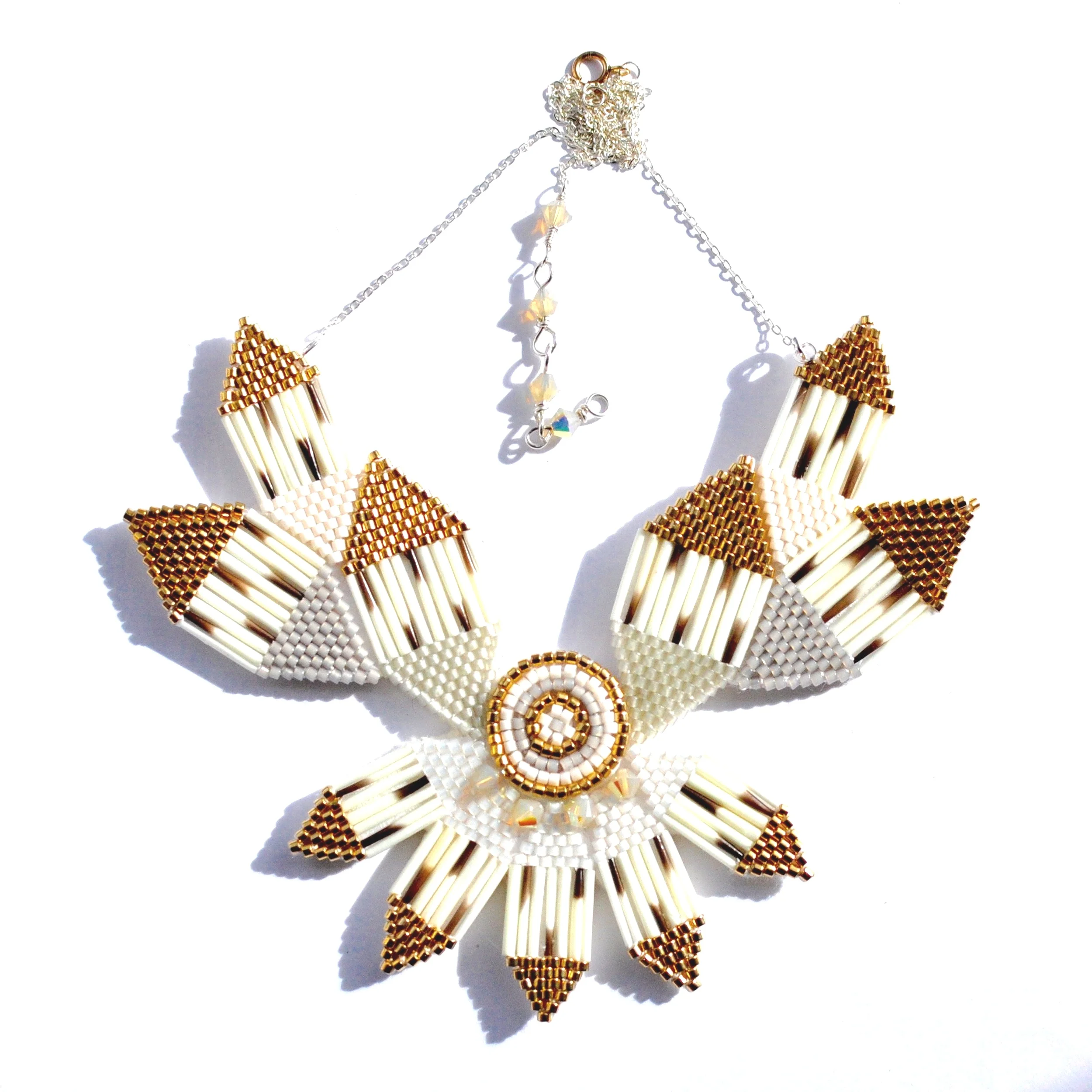 Materials: Delica Beads, Porcupine quills, 24kt Gold Filled Chain & notions, Swarovski Crystals