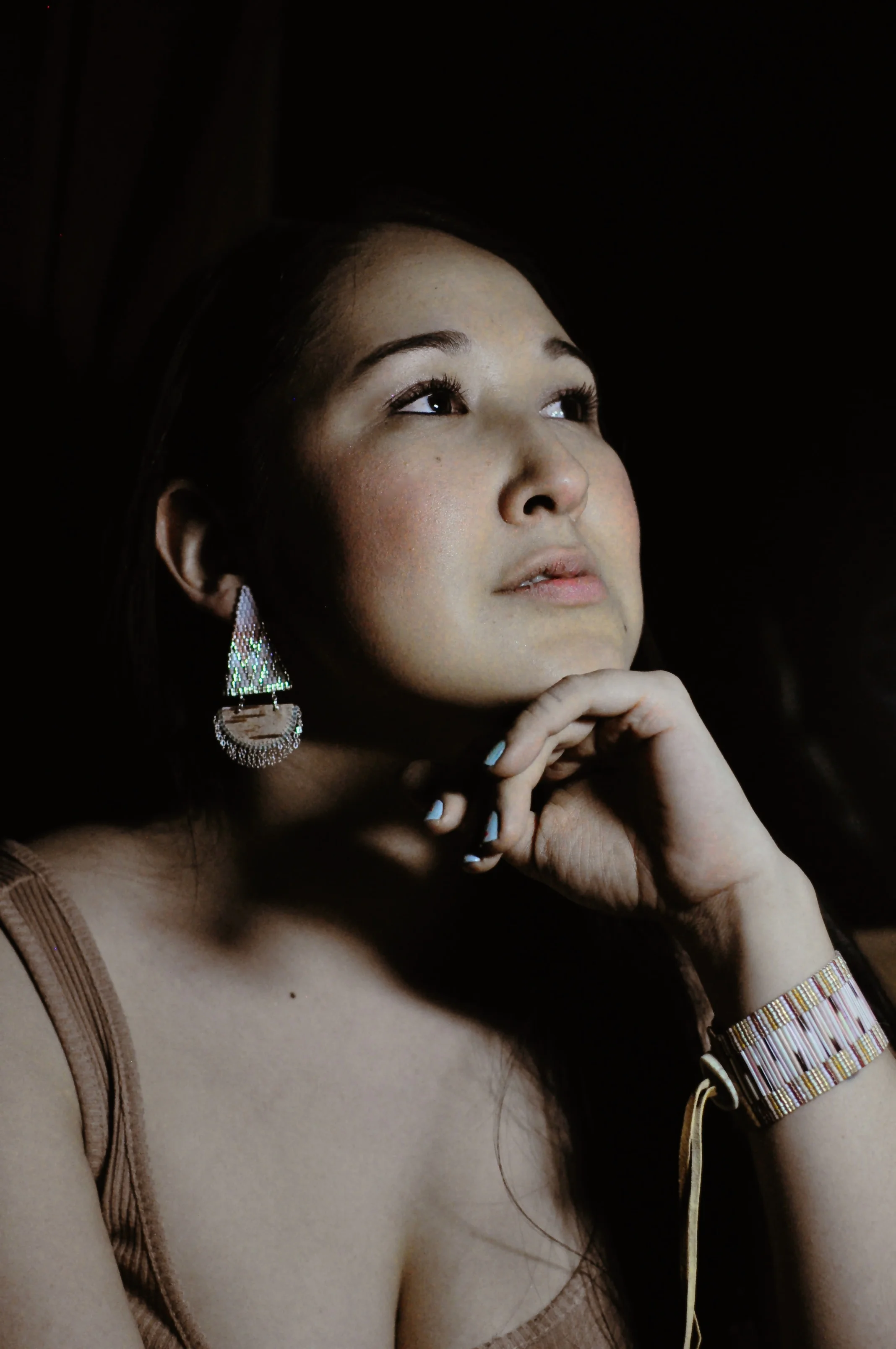 Jewellery: Beaded and Quill Cuff, Petal Earrings, Shield Ring. Photo Courtesy of: Angela Gzowski